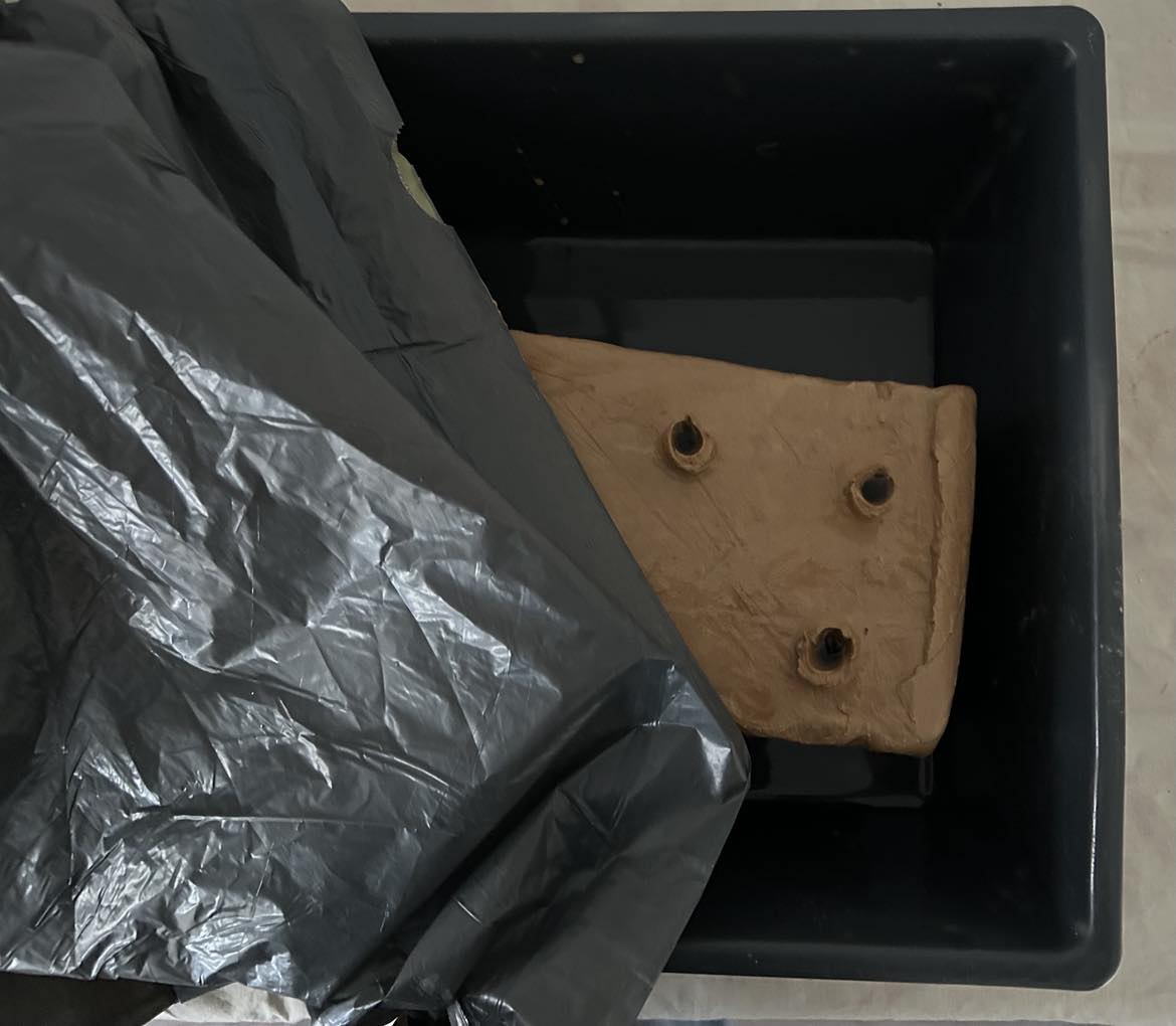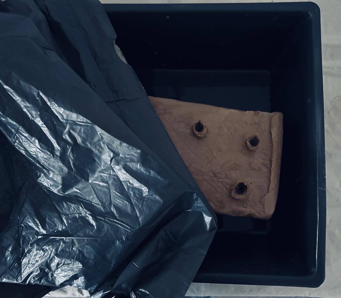 Als laatste pak je de bak met de klei in een vuilniszak. Knoop deze goed dicht en laat hem een weekje staan. Als je een dichte bak heb dan kan je de deksel er op doen en ook na een week even kijken hoe het er voor staat. Succes!